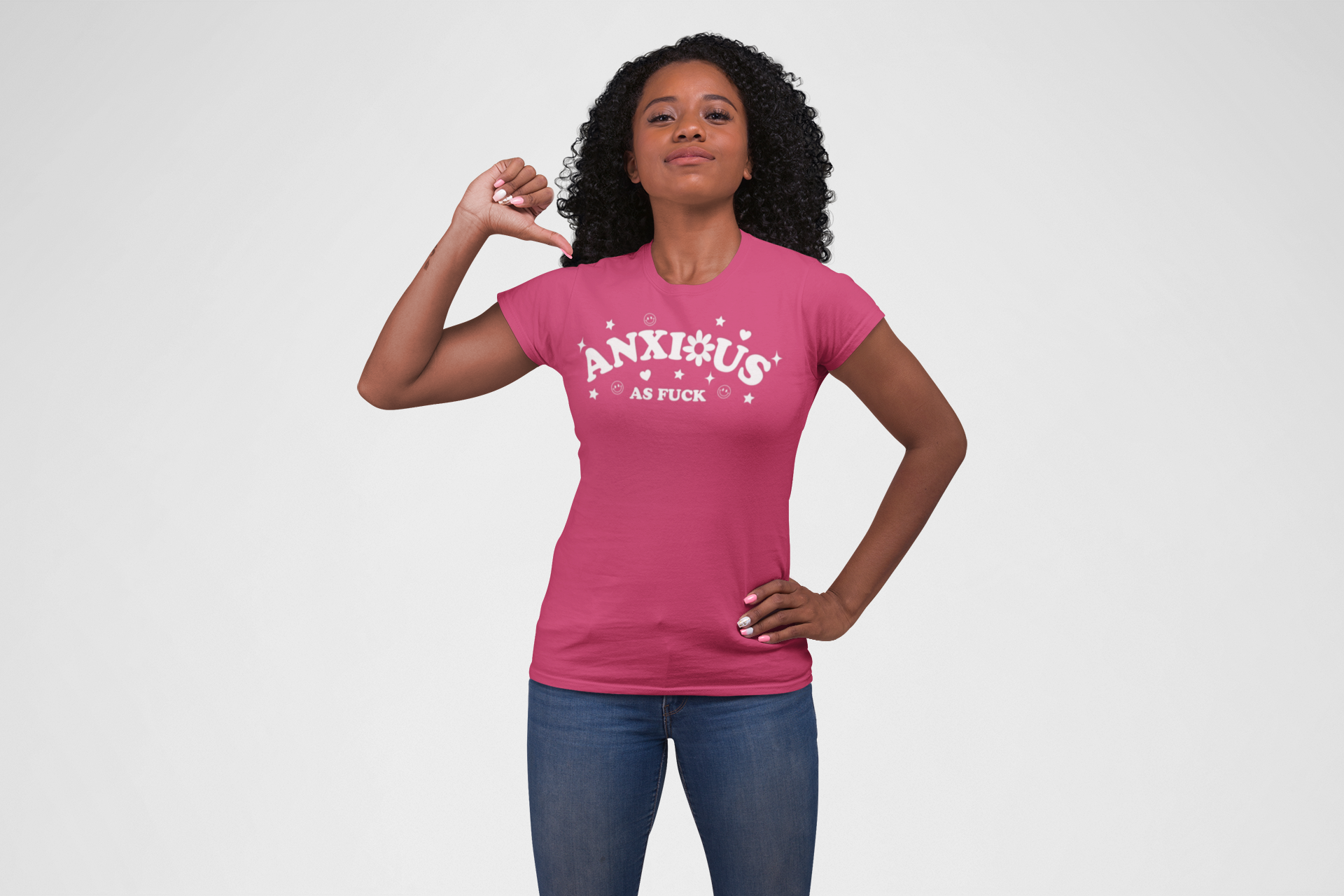 Show your sense of humor and raise awareness about mental health with this “Anxious As Fck”* T-shirt. Featuring a bold and playful design, it’s perfect for anyone who lives with anxiety and wants to share a laugh about the daily struggles. This tee is a lighthearted way to connect with others who understand while sparking important conversations about mental health.