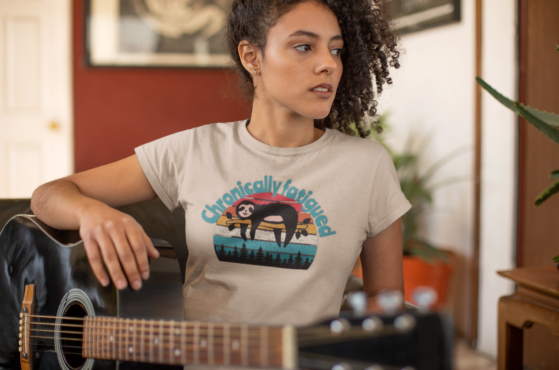 Embrace your inner sloth and let the world know that even though you’re chronically fatigued, you still have a sense of humor. This “Chronically Fatigued” T-shirt features an adorable sloth hanging from a branch, capturing the essence of daily life for those battling chronic fatigue and other invisible illnesses. It’s a lighthearted way to start conversations, connect with others who understand, and raise awareness about the challenges of living with chronic illness. Whether you’re heading out for a casual day or attending a support group meeting, this shirt is designed to keep you comfortable while making a bold statement.