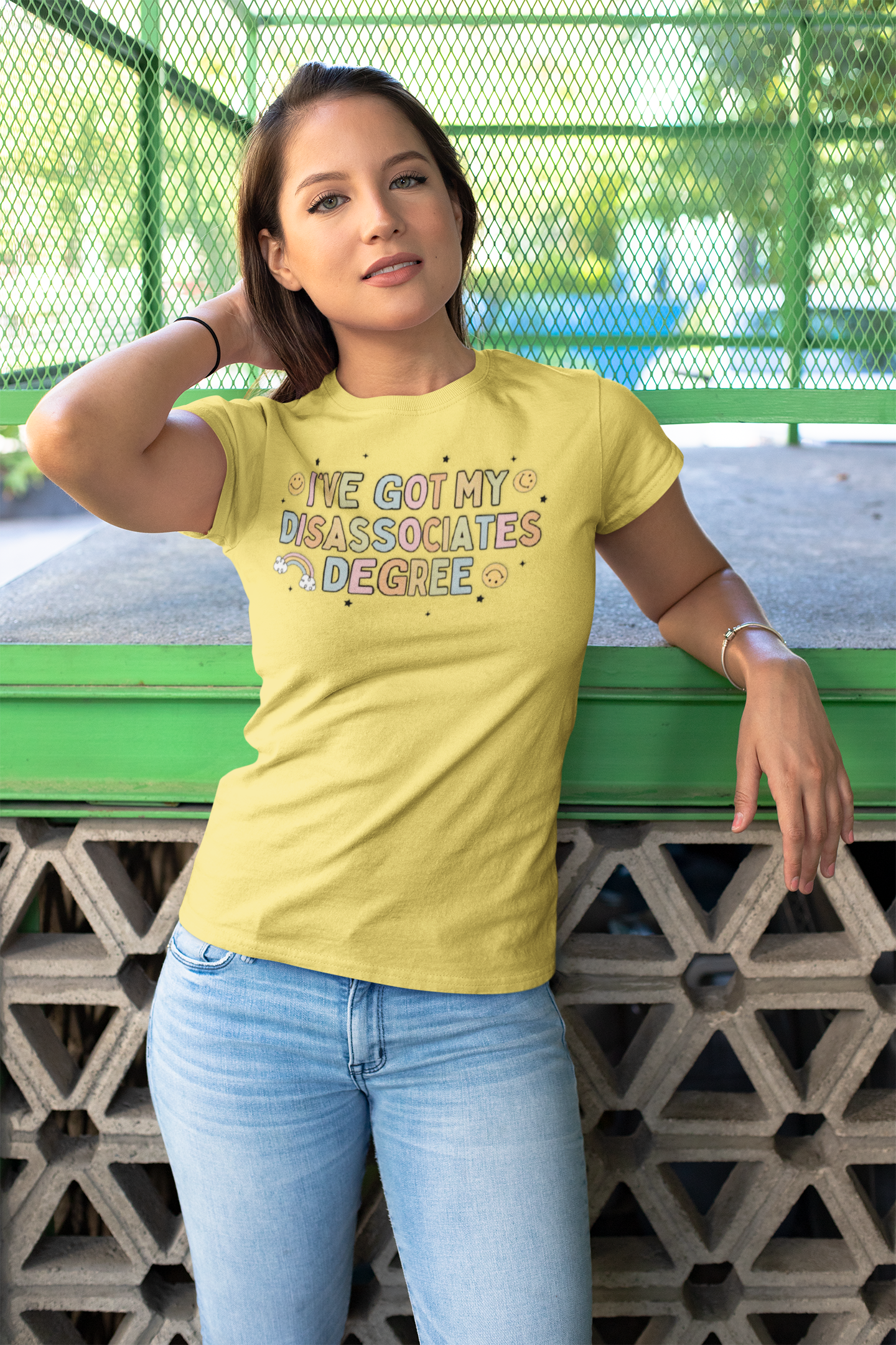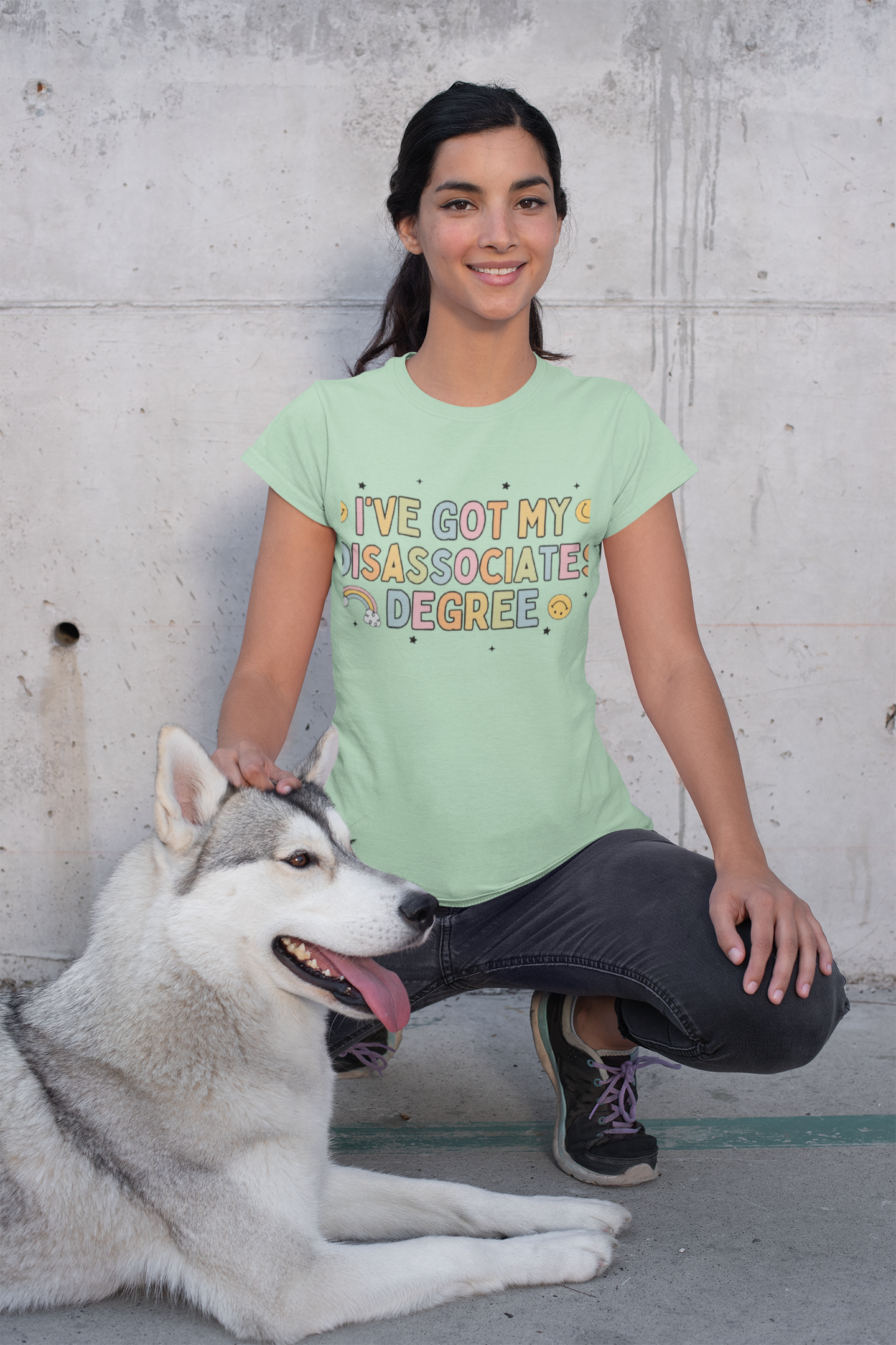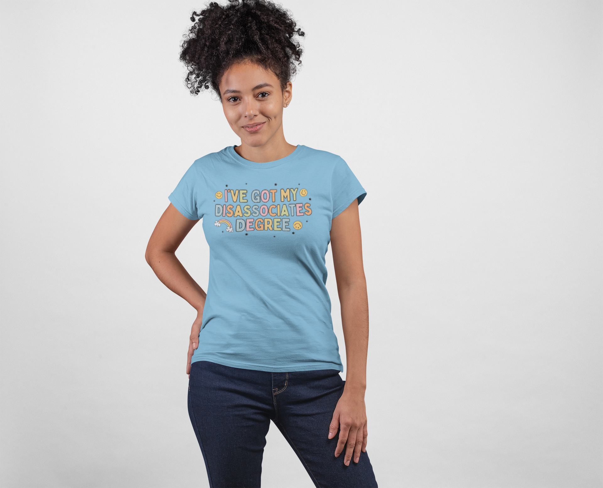 Wear your humor and resilience with pride in the “I’ve Got My Disassociates Degree” T-shirt. Created for those who experience dissociation as part of their mental health journey, this tee offers a lighthearted take on a serious subject. It’s designed to connect with others who understand, while raising awareness about an often misunderstood experience.
