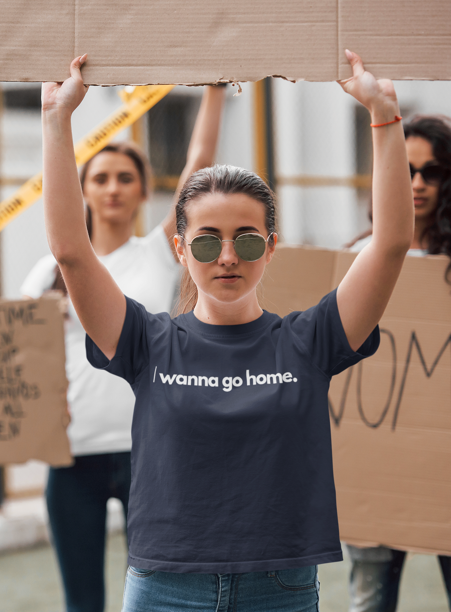 Express your feelings without saying a word in this “I Wanna Go Home” T-shirt—perfect for anyone who battles social anxiety, introversion, or just really, really loves their couch. The simple design says it all: comfort > chaos.