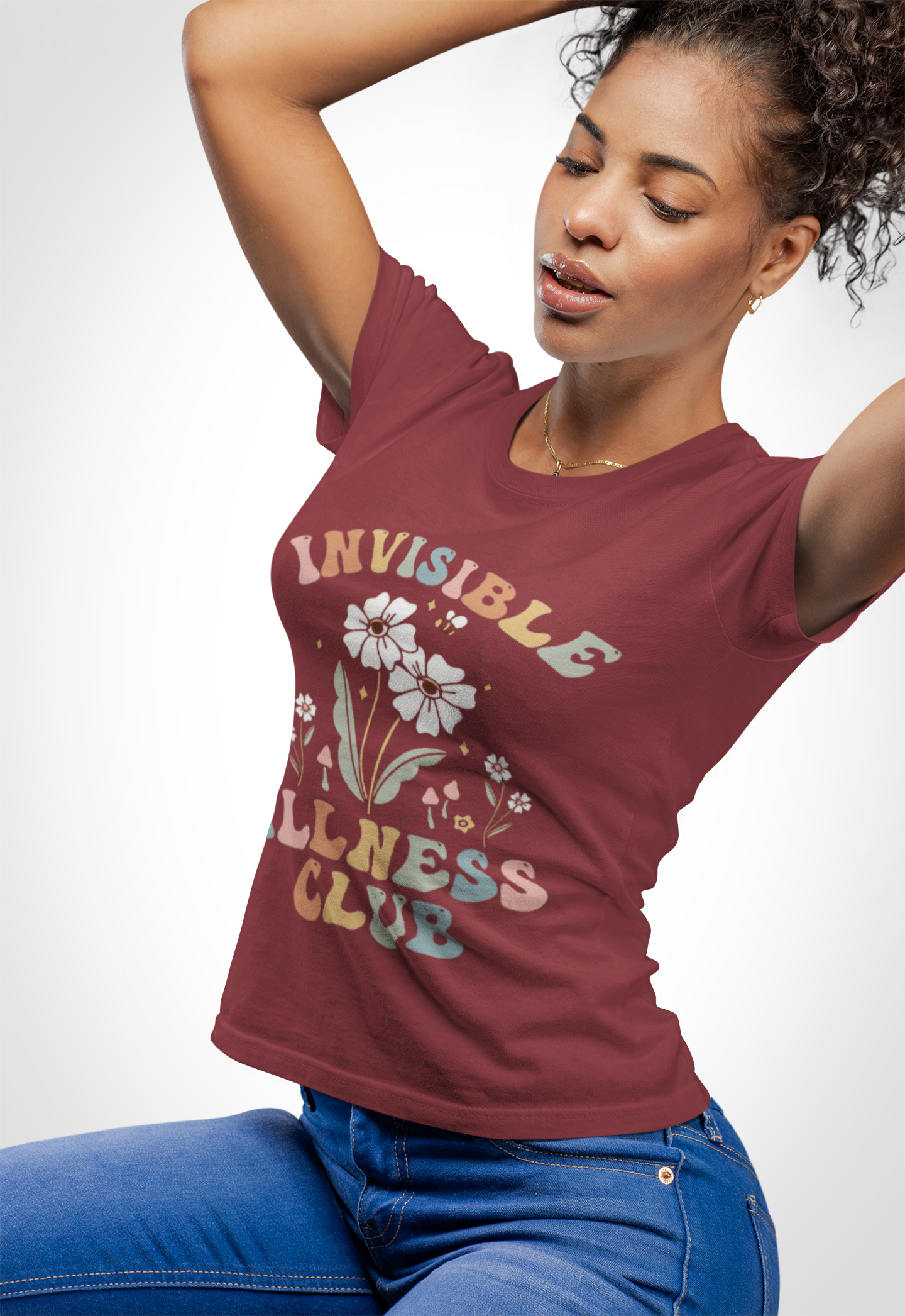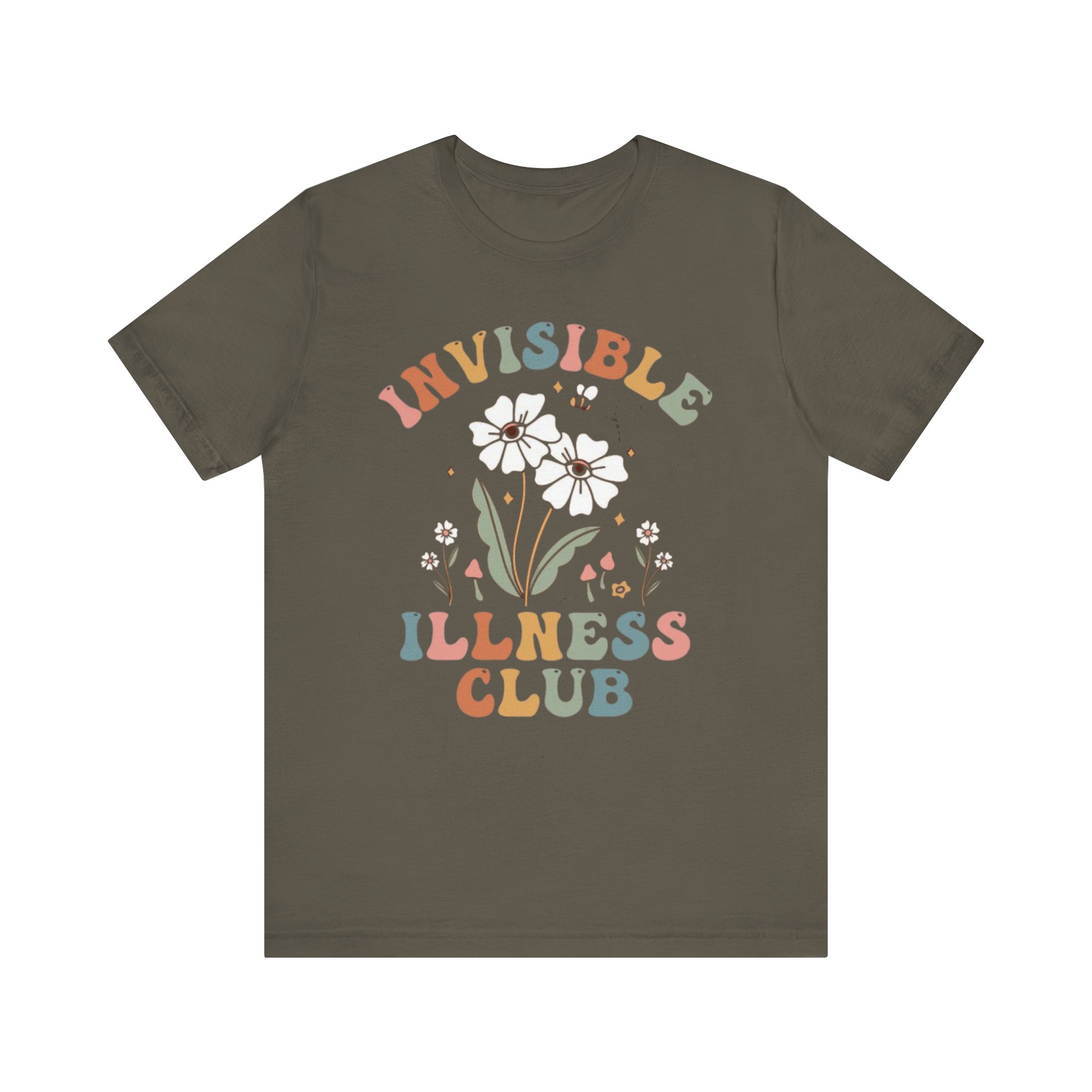 Join the Invisible Illness Club with this beautifully designed T-shirt. Featuring a delicate floral design, this shirt is perfect for raising awareness about invisible illnesses. These are conditions that significantly impact a person’s life yet are not immediately apparent to others—such as chronic pain, fatigue, and mental health disorders. By wearing this shirt, you help bring visibility to these hidden struggles, fostering empathy, understanding, and support for those who live with them every day. It’s a stylish way to show solidarity and spark conversations that lead to greater awareness and compassion.