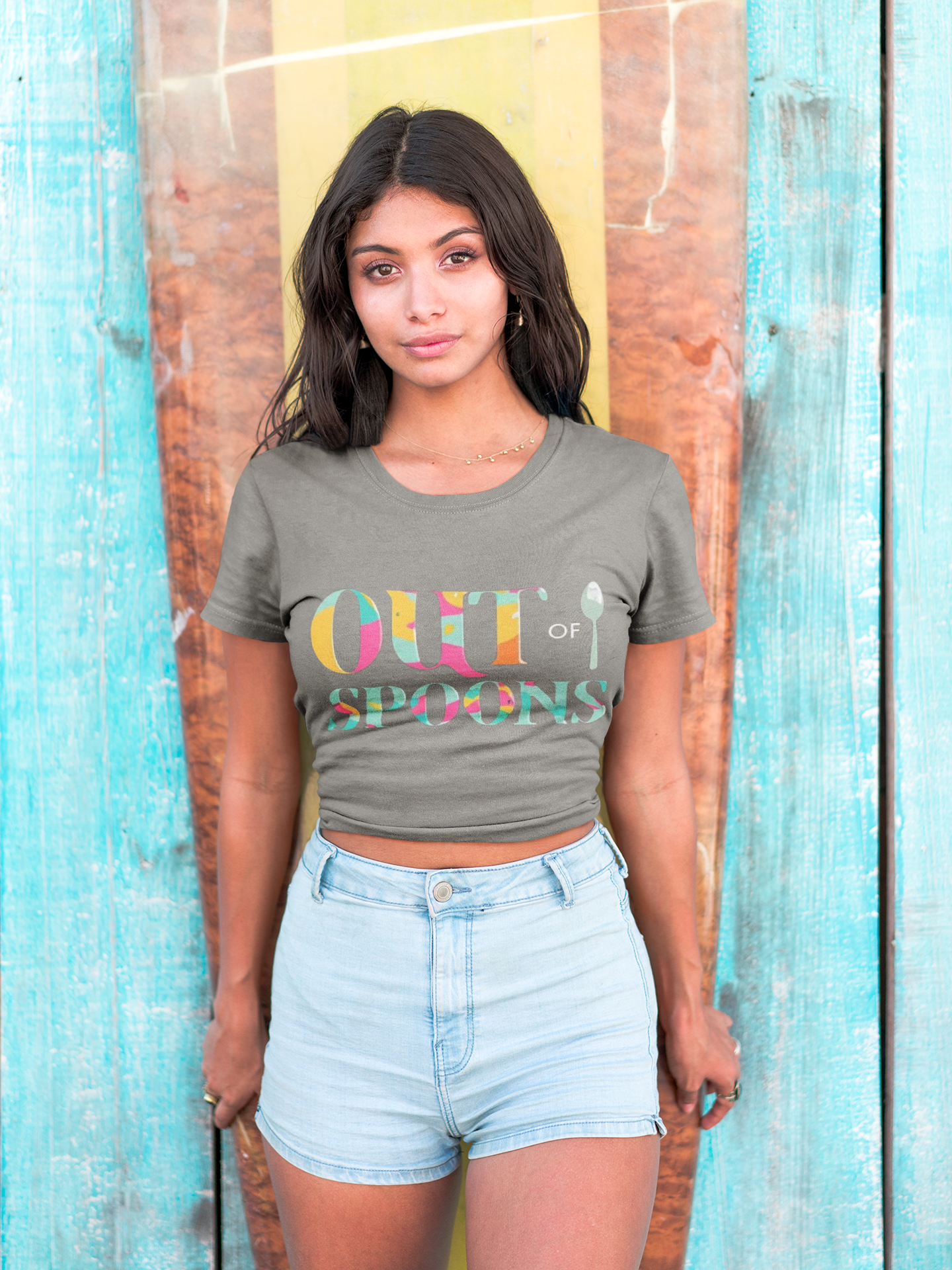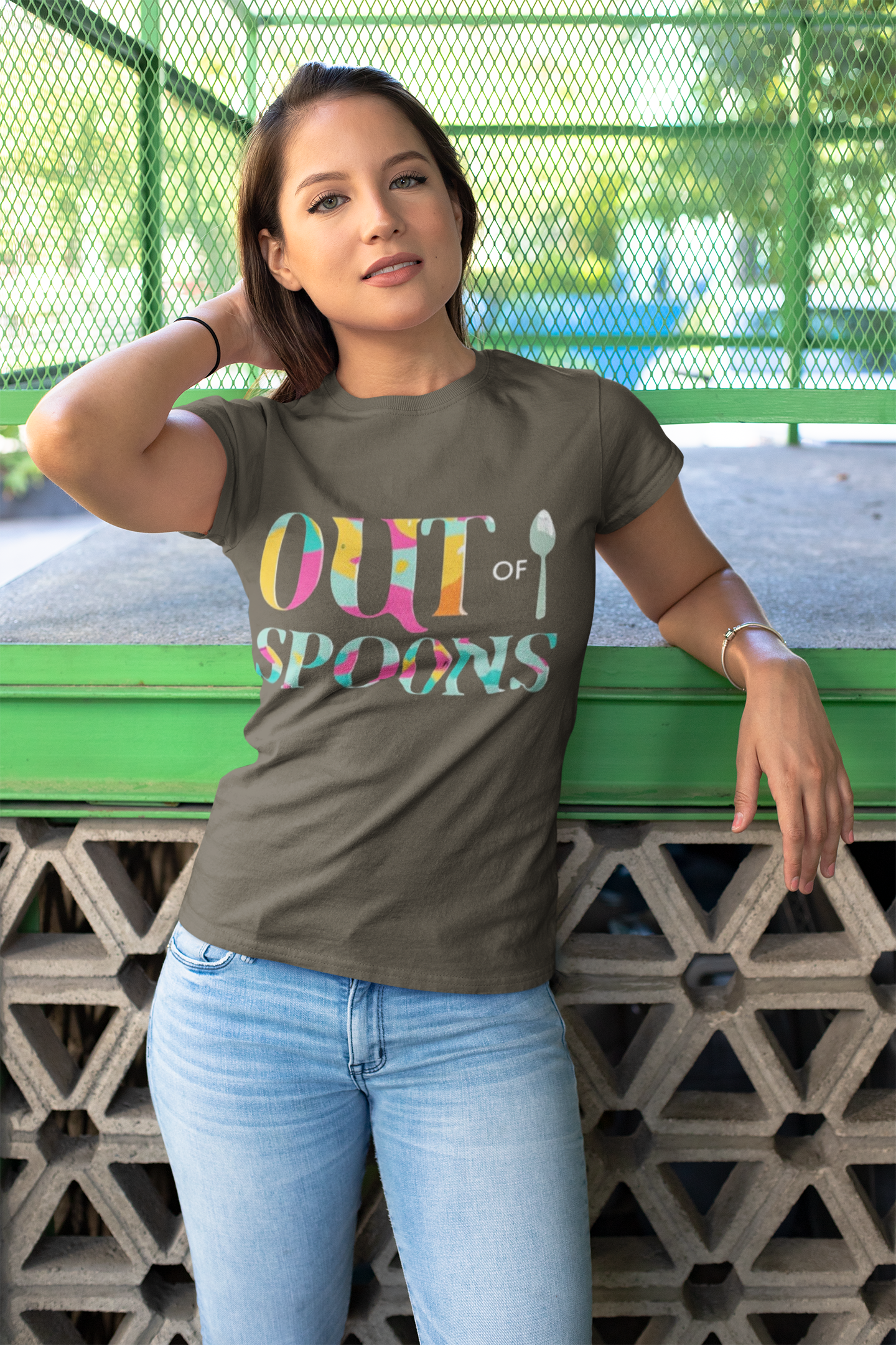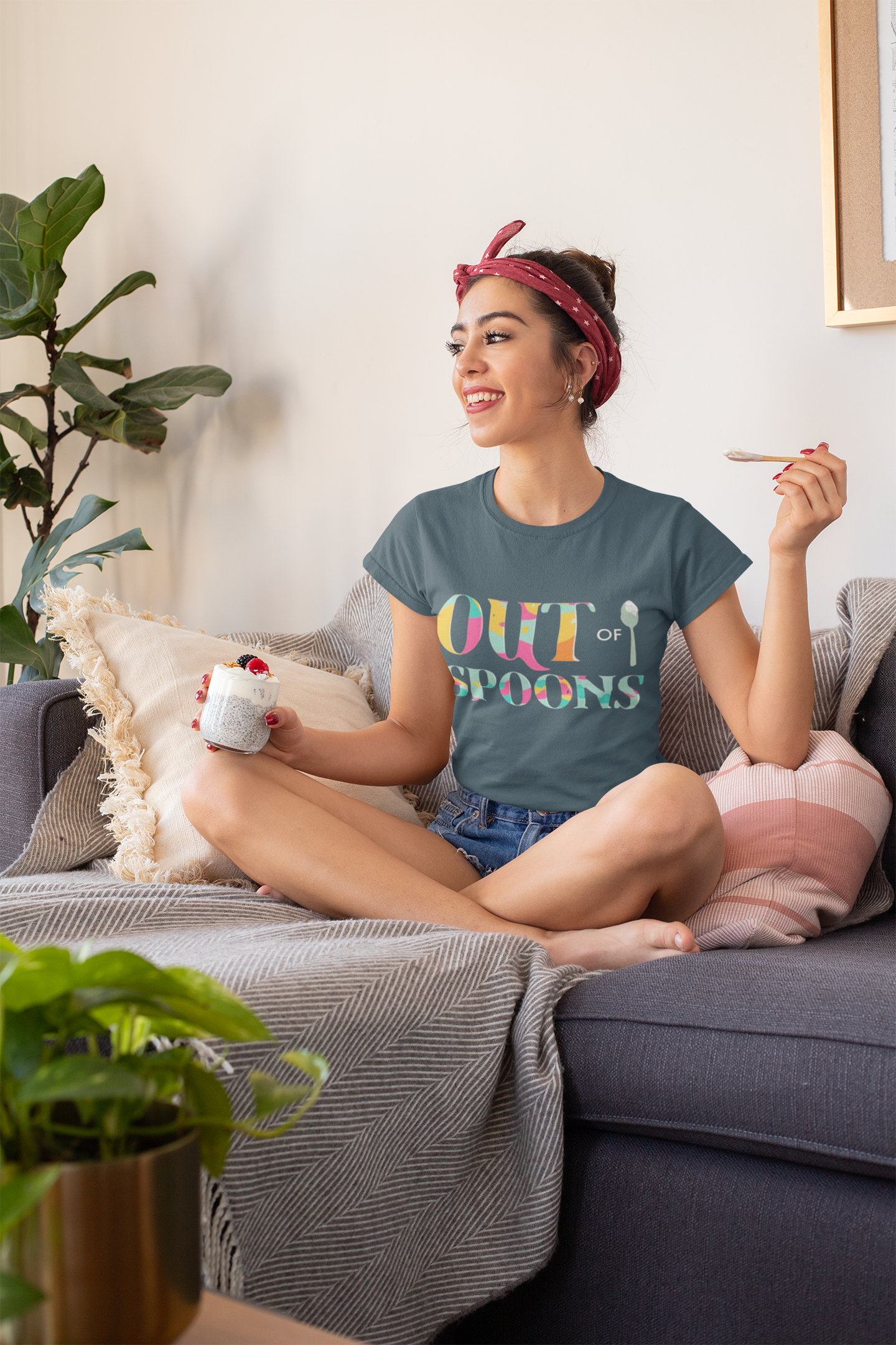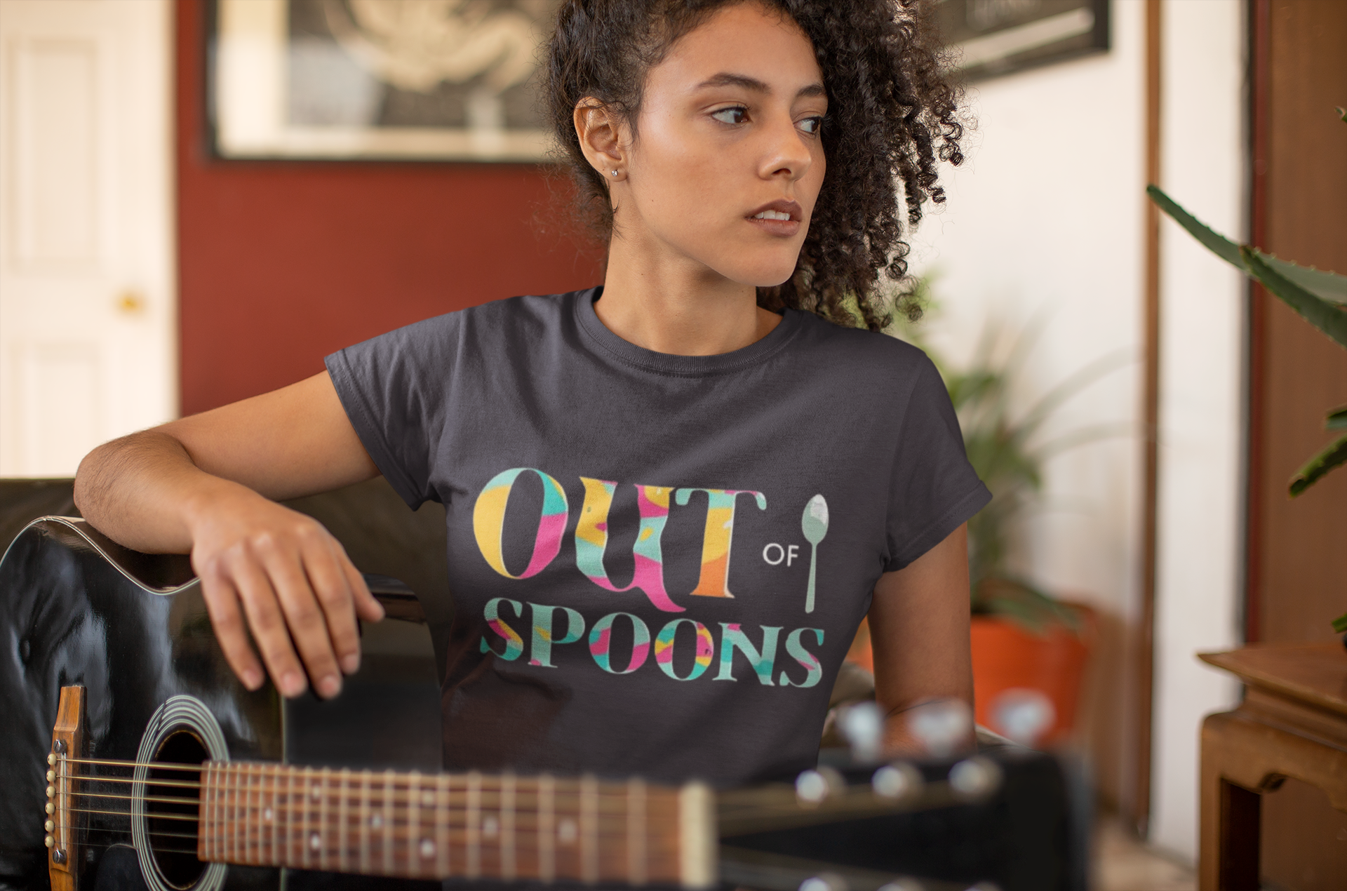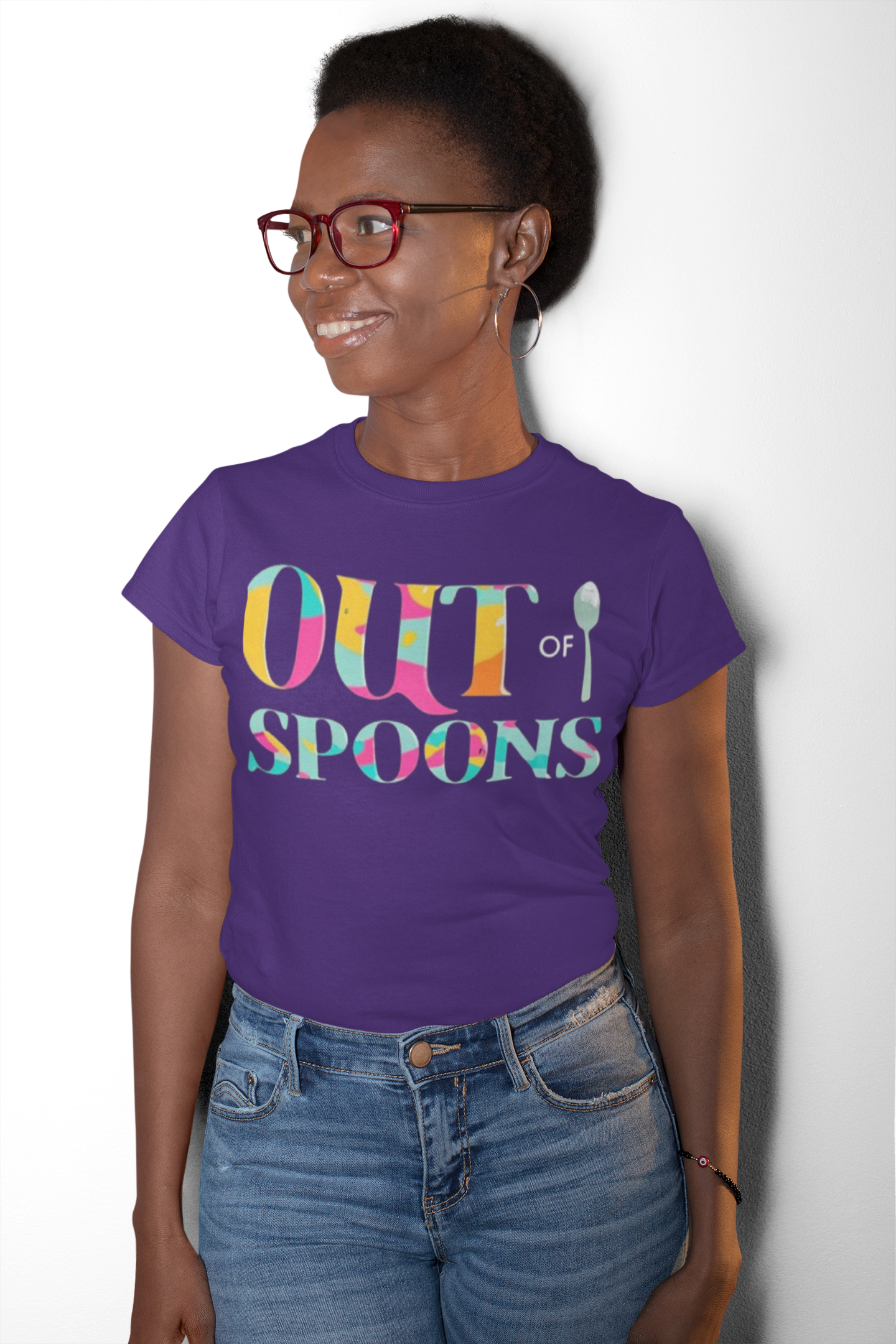 Show your support and raise awareness about the Spoon Theory with this “Out of Spoons” T-shirt. Featuring a vibrant and colorful design, this shirt humorously captures the feeling of running out of energy—a sentiment well-known to those living with chronic illness. The Spoon Theory, a popular metaphor for explaining the limited energy available to people with chronic conditions, is represented in a playful yet impactful way through this design.