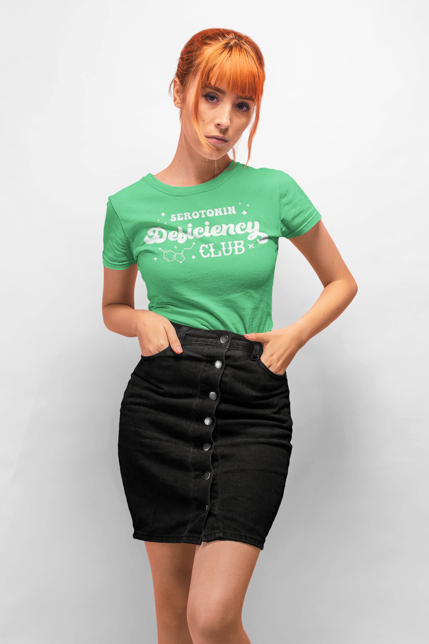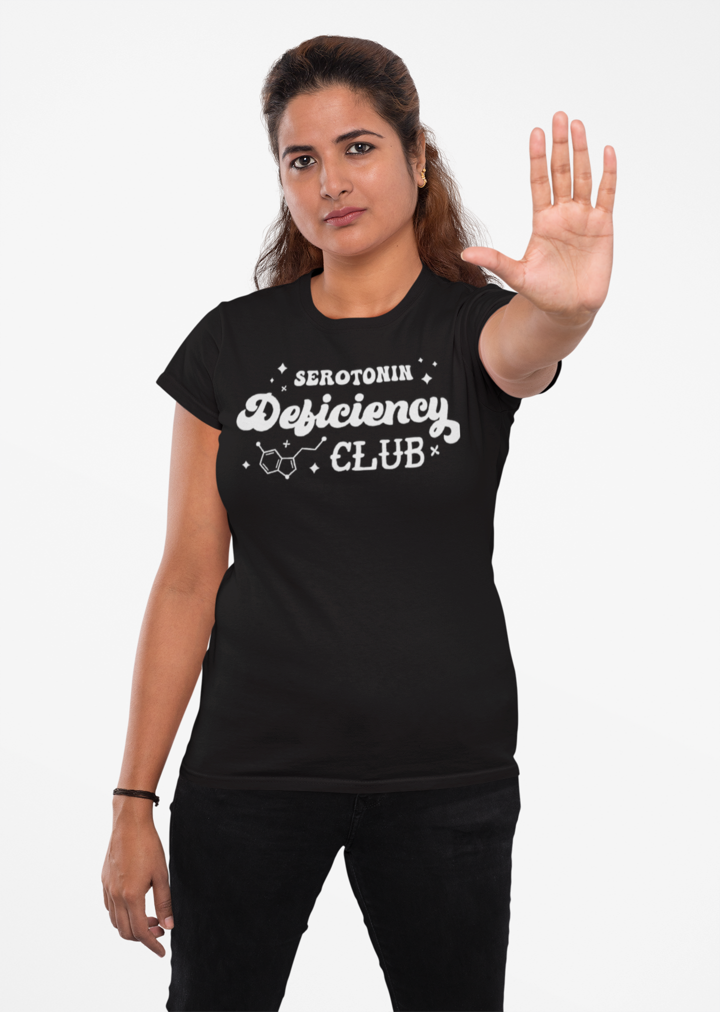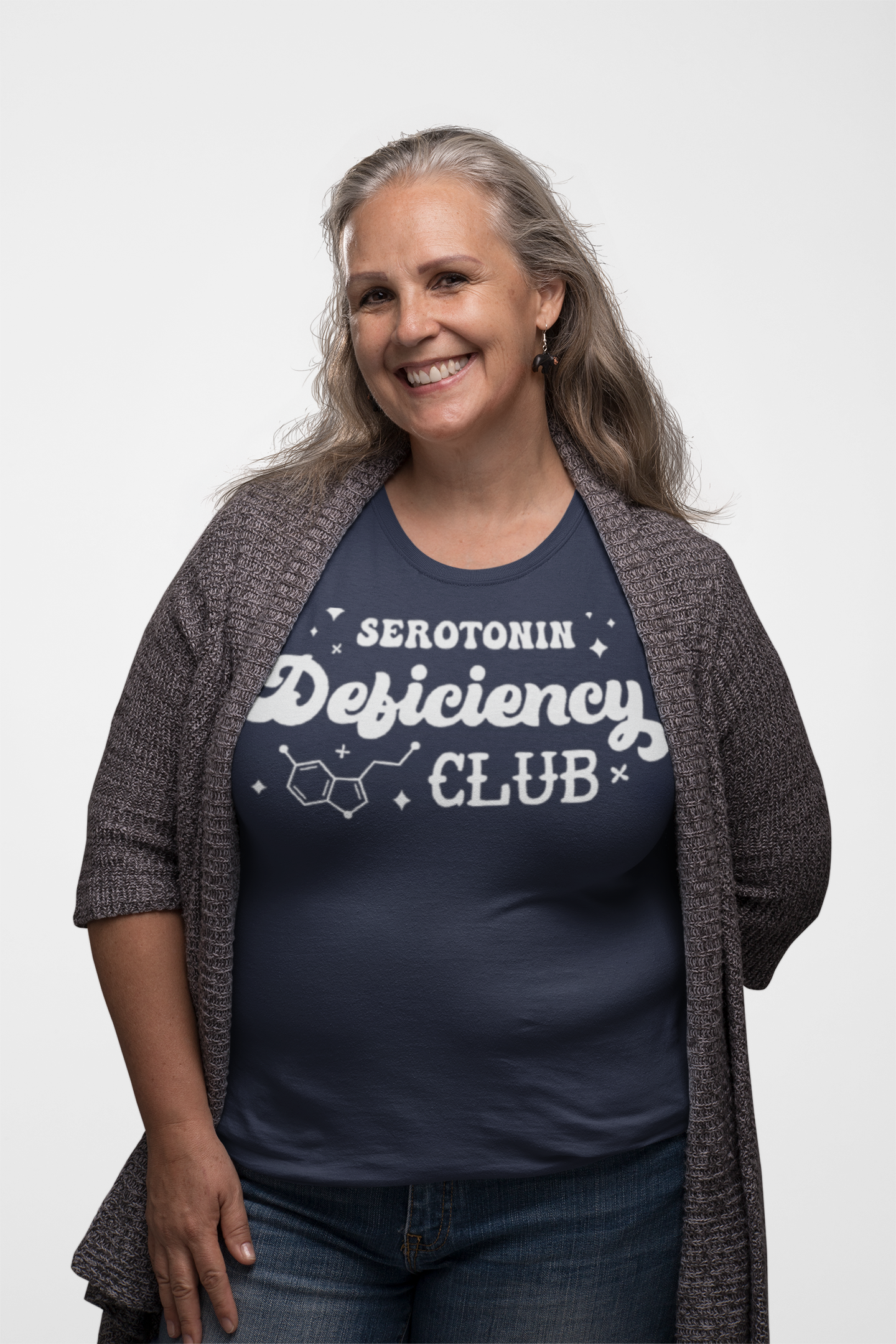Join the “Serotonin Deficiency Club” with this fun and relatable T-shirt. Designed for those who know the ups and downs of mental health, it’s a lighthearted way to spread awareness and connect with others who share similar experiences. Featuring a playful design with the serotonin molecule, this shirt is perfect for sparking conversations and showing solidarity.